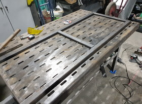 Выкладываем элементы конструкции на рабочем столе в виде готового изделия и подготавливаем их к сварке.