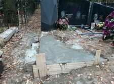 В первую очередь мы начали с подготовки надёжного основания для будущего памятника. Для этого мы раскопали необходимую часть места захоронения.