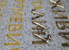 Покрытие надписи сусальным золотом,